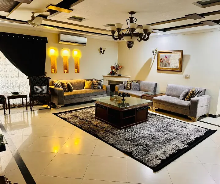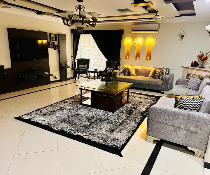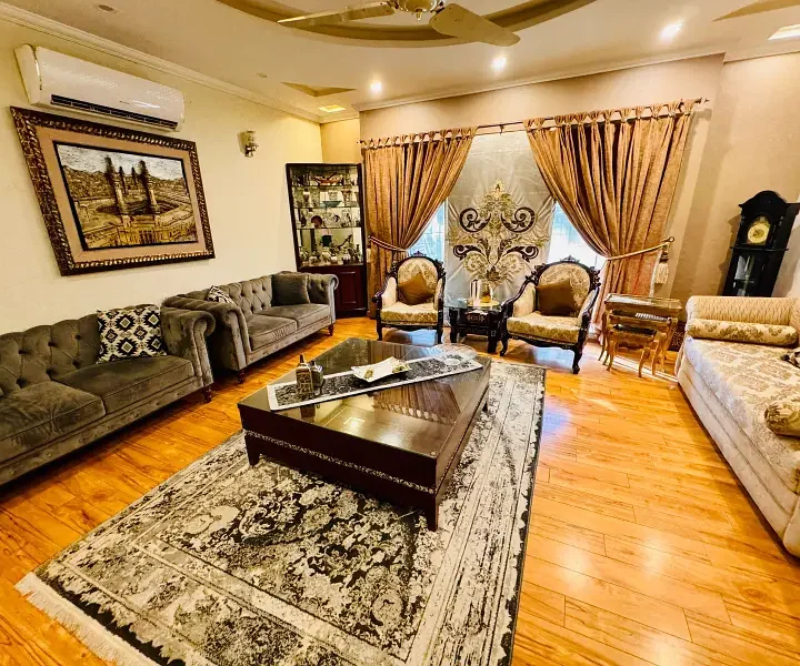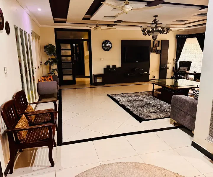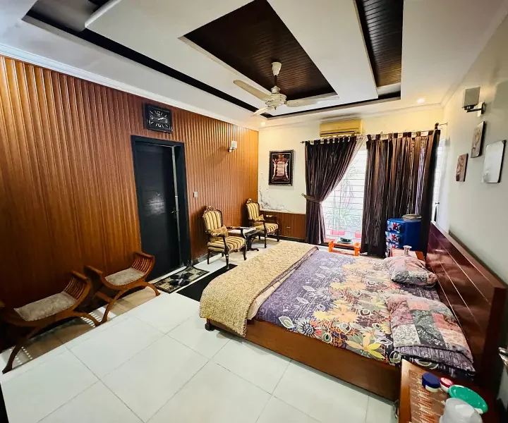 1 Kanal luxury modern house is available for sale, offering premium living with elegant architecture and top-quality construction. The house features spacious bedrooms with attached luxury bathrooms, a grand drawing and dining room, multiple TV lounges, an imported kitchen with modern fittings, a separate dirty kitchen, a stylish powder room, and a servant quarter with attached bath. With a wide car porch, premium flooring, elegant ceiling designs, and complete wooden work, this home is an ideal choice for families seeking luxury, comfort, and privacy in a prime location.