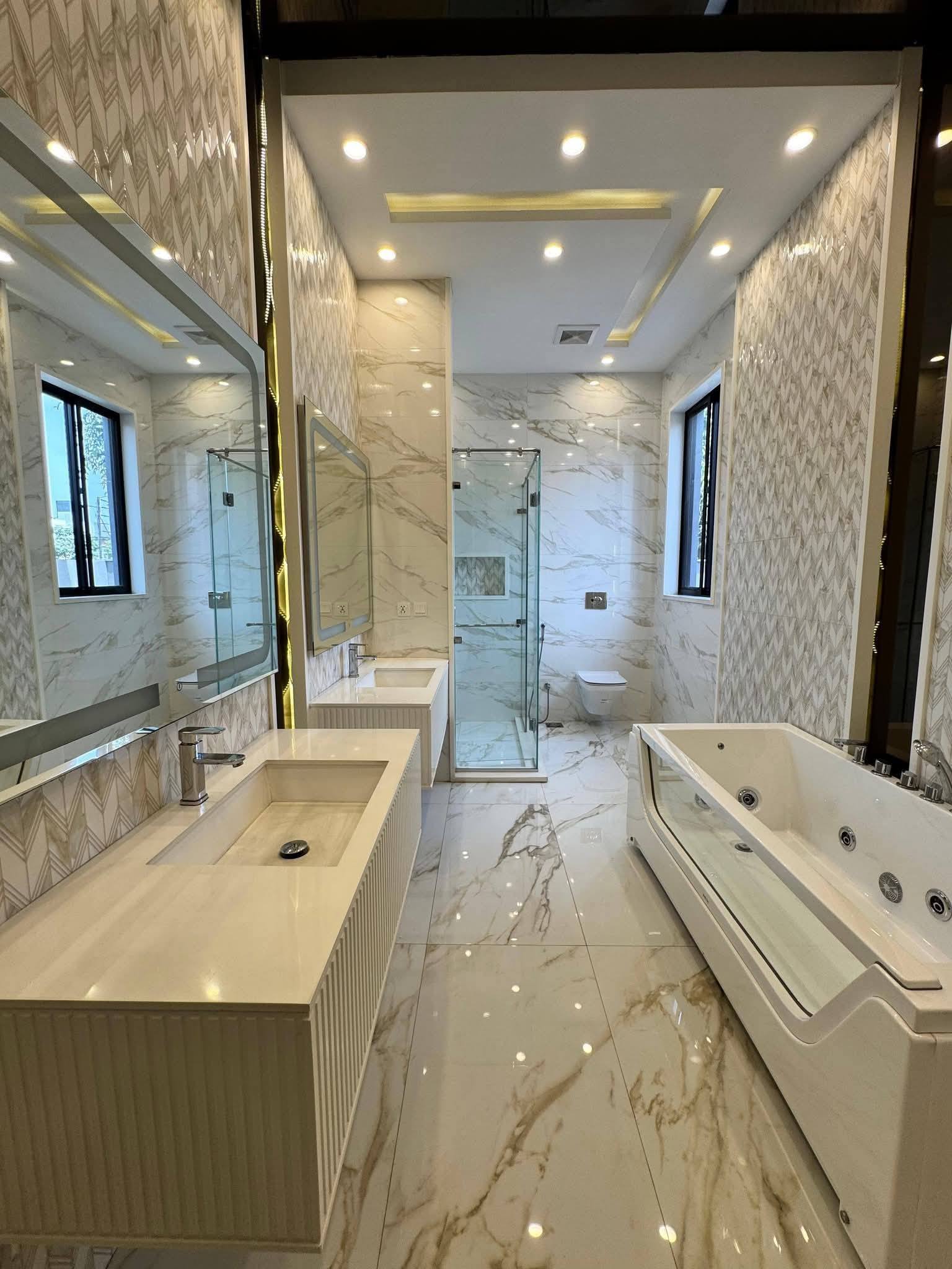 The house includes 5 spacious bedrooms with 6 stylish washrooms, ideal for large families.