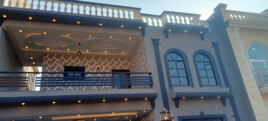 10 Marla double-storey house for sale in Dream Garden, Multan featuring 5 bedrooms, 6 bathrooms, and 1 kitchen. Ultra-modern interiors with drawing room, lounging area, powder room, kids’ play area, broadband internet, community swimming pool, and nearby mosque for comfortable family living.