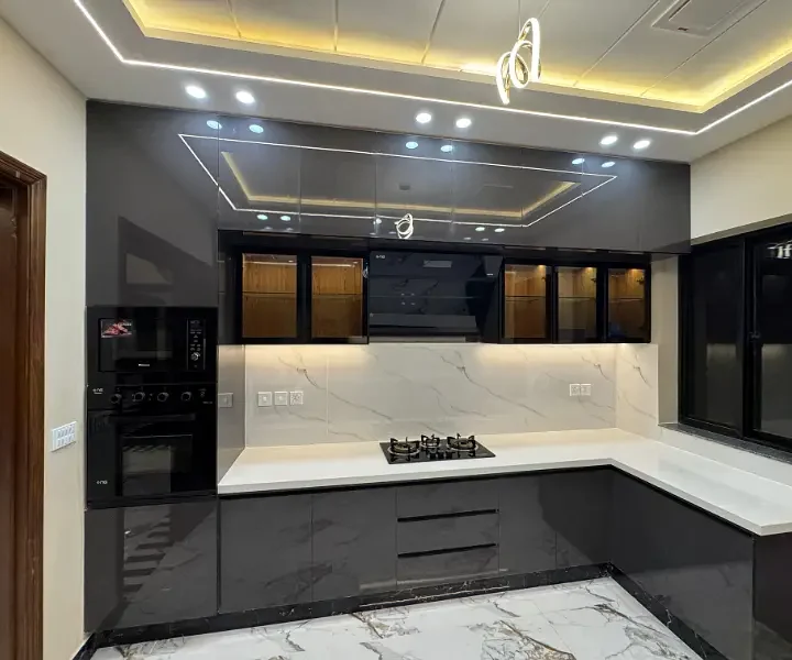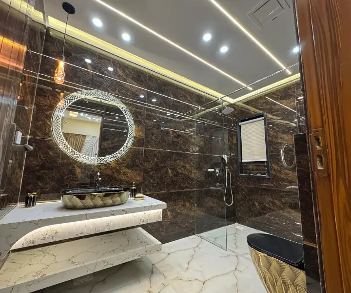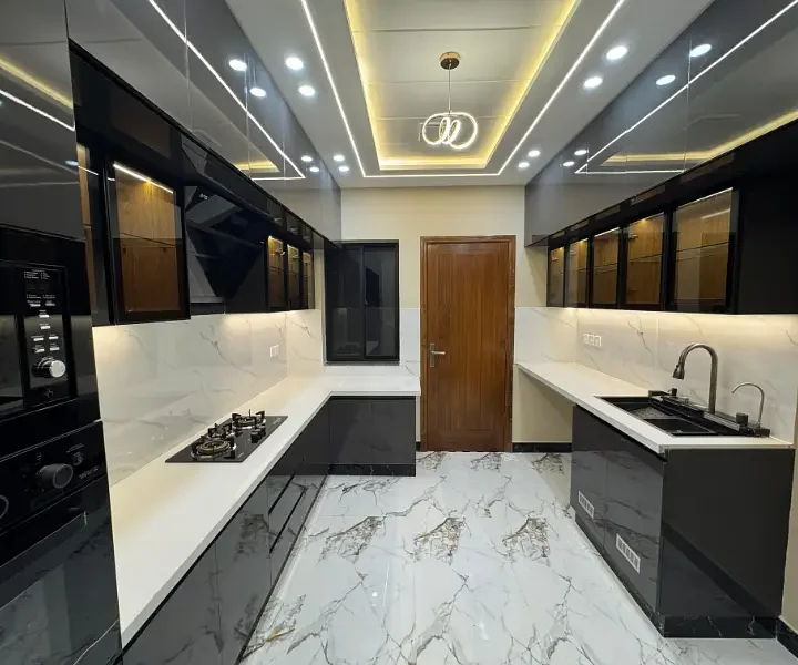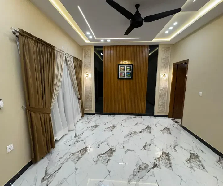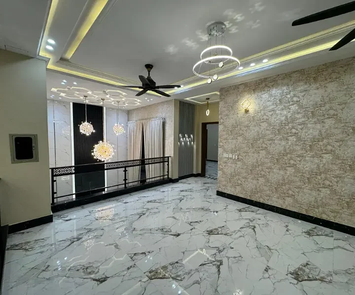 10 Marla double story full house is available for sale in an outclass location. The house features 5 bedrooms with attached washrooms, 2 drawing and dining areas, 2 TV lounges, 2 kitchens, front and back terraces, and car parking. It is an ideal property for comfortable family living in a prime area.