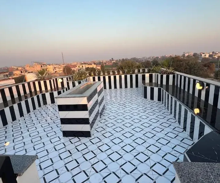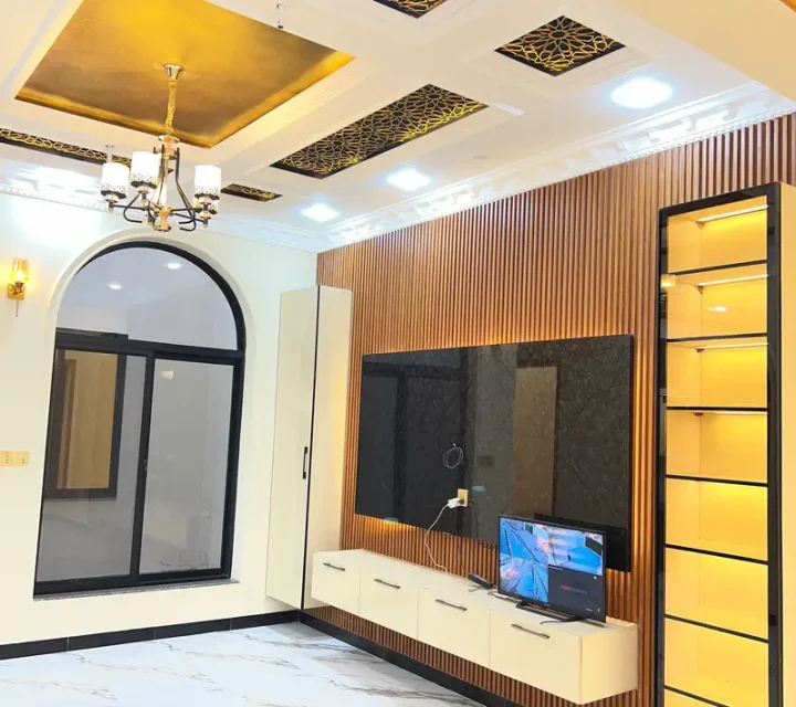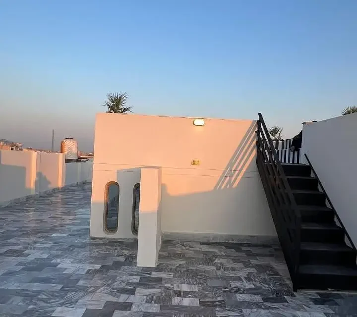 10 Marla semi-commercial house for sale in Chah Daad Wala, ideally located in front of Royal International School on Multan Avenue Road. The property offers 5 bedrooms with attached washrooms, 2 TV lounges, and 2 American-style kitchens, along with a mezzanine floor and rooftop BBQ lounge. It also includes a 3-car garage, gas connection, underground utilities, and 24-hour security. Perfect option for commercial use or comfortable family living in a prime location.