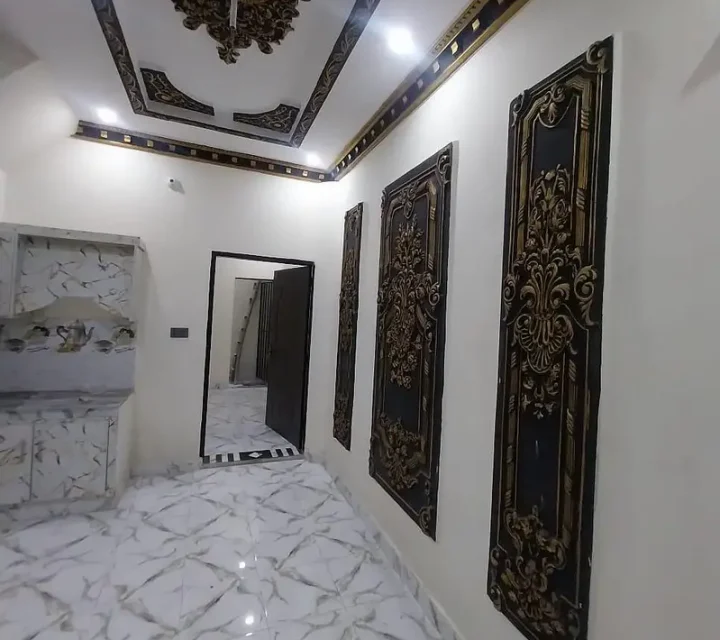 2 Marla house is available for sale in Shera Kot, Lahore, near 60 Foot Road. The property features 3 bedrooms, 2 bathrooms, 2 kitchens, a garage, and a roof. Beautifully furnished with quality tiles, ceiling work, and woodwork, this house offers a modern and comfortable living environment, ideal for small families seeking a secure and well-connected location.