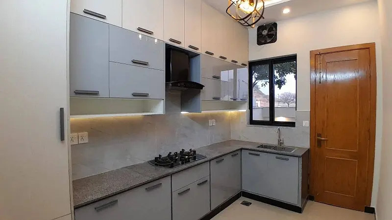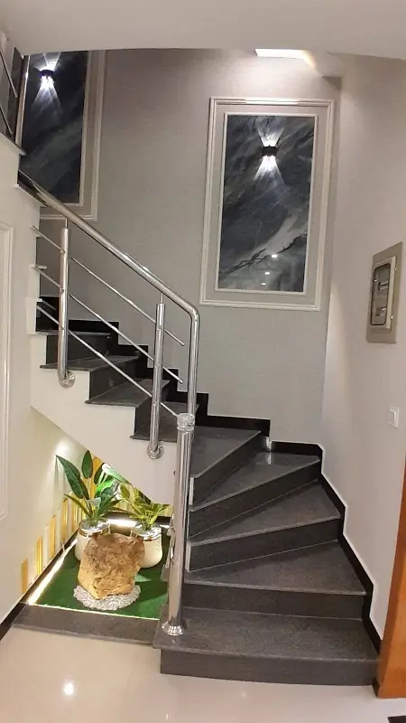 5 Marla house for sale in Bahria Enclave - Sector H, Islamabad, featuring modern design and premium construction quality. The house includes 3 spacious bedrooms with attached bathrooms, luxury washrooms, a servant room with attached bath, and a powder room for guests. It also offers a designer kitchen with quality fittings, elegant TV lounge, drawing area, and beautifully designed flooring, ceiling, and lighting. Built with A++ construction and a solid structure, this property is perfect for families seeking a luxurious and comfortable home.