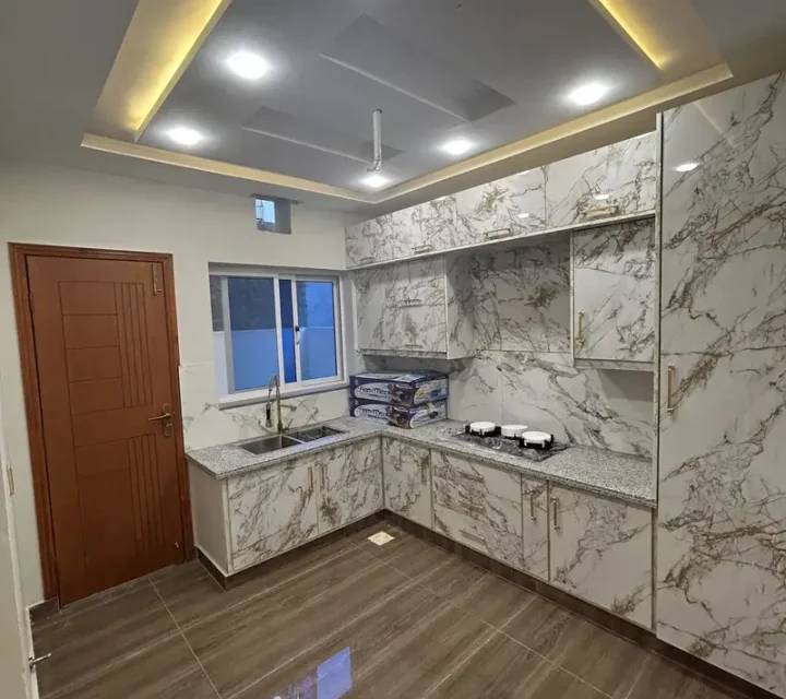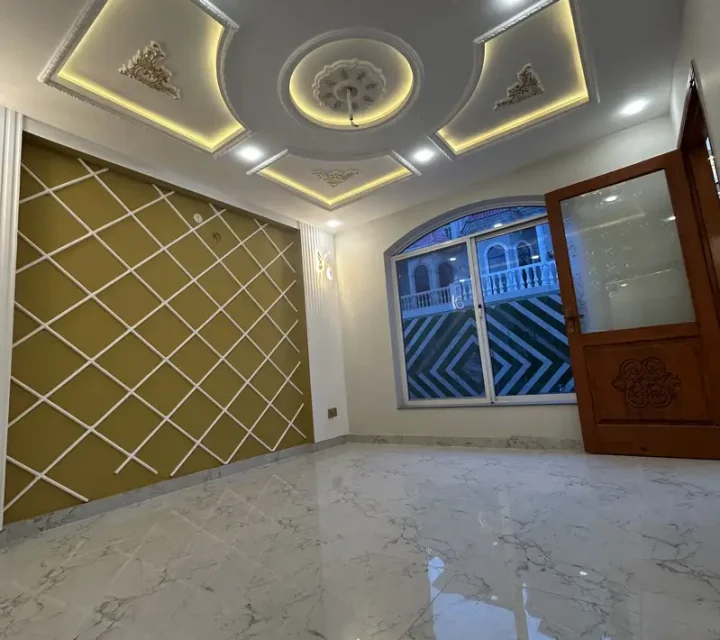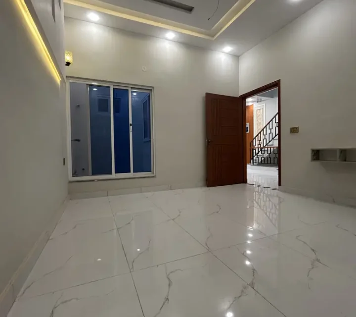 5 Marla brand new house is available for sale in Hamid Block, Multan. The house features 4 bedrooms with attached bathrooms, a total of 5 bathrooms, double TV lounges, 2 kitchens, a store room, and a spacious drawing room, offering a modern and comfortable living environment for families.