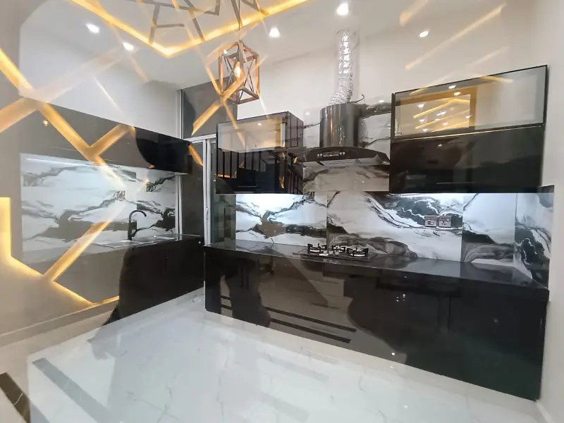 The house features a modern double kitchen setup for convenience and functionality.