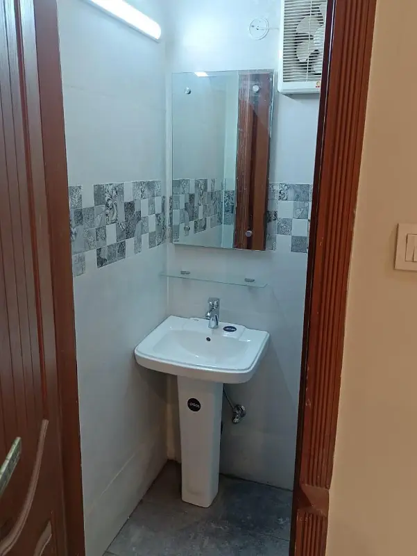 6 Marla house featuring ground floor with drawing room, 1 bedroom with attached bathroom, kitchen, and parking; first floor with 3 bedrooms with attached bathrooms and terrace. Enjoy free electricity, WiFi, and home delivery service. Ideal for comfortable family living.