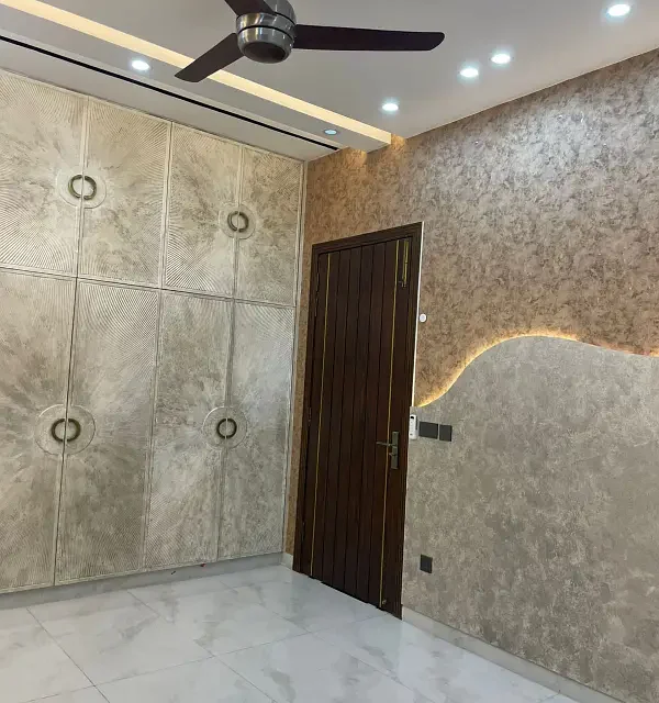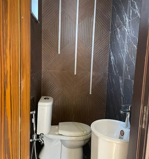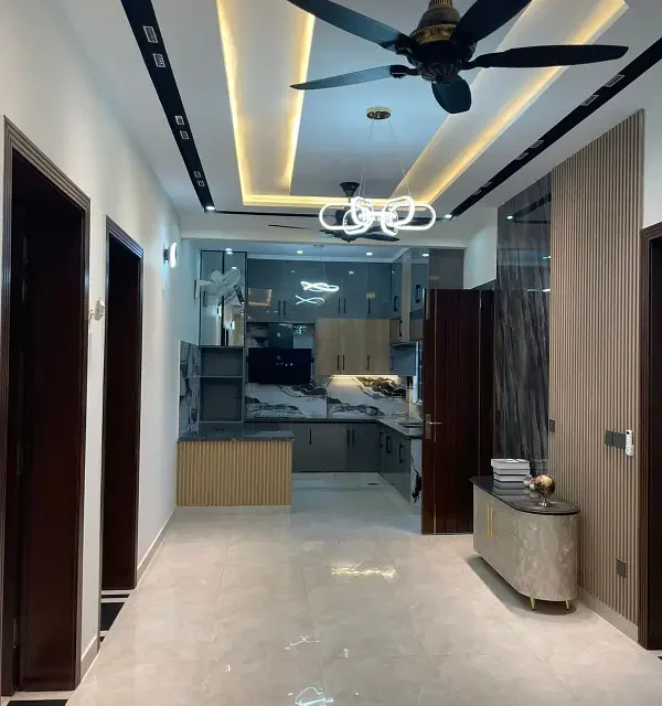 9 Marla double-storey house for sale in Bahria Town Sector E, Lahore. This well-planned home features 5 spacious bedrooms with 6 attached bathrooms, 2 modern kitchens, 2 TV lounges, and a separate drawing room. The house also offers covered car parking and is built with a practical layout ideal for family living. Located in a secure gated community, all utilities including gas, electricity, water, and sewerage are available, with easy access to parks, mosques, schools, and commercial areas.